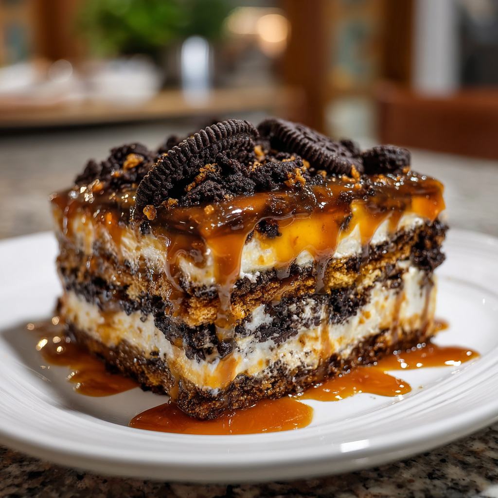No-Bake Oreo Caramel Lasagna