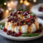 A festive and delicious Brie Cheese and Cranberry Christmas Wreath perfect for holiday gatherings.
