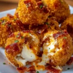The aroma of sizzling chicken fills the air, mingling with the smoky fragrance of crispy bacon and the zesty tang of buffalo sauce. As you enter your kitchen, the anticipation grows. You know that the moment you bite into these Buffalo Chicken Bacon Mozzarella Bombs, they will explode with flavor and crispy goodness. Each mouthful reveals tender, juicy chicken enveloped around gooey, melted mozzarella, punctuated by the crunch of golden breadcrumbs. This is comfort food that doesn’t just satisfy the hunger but ignites joy and celebration, making every game day memorable.