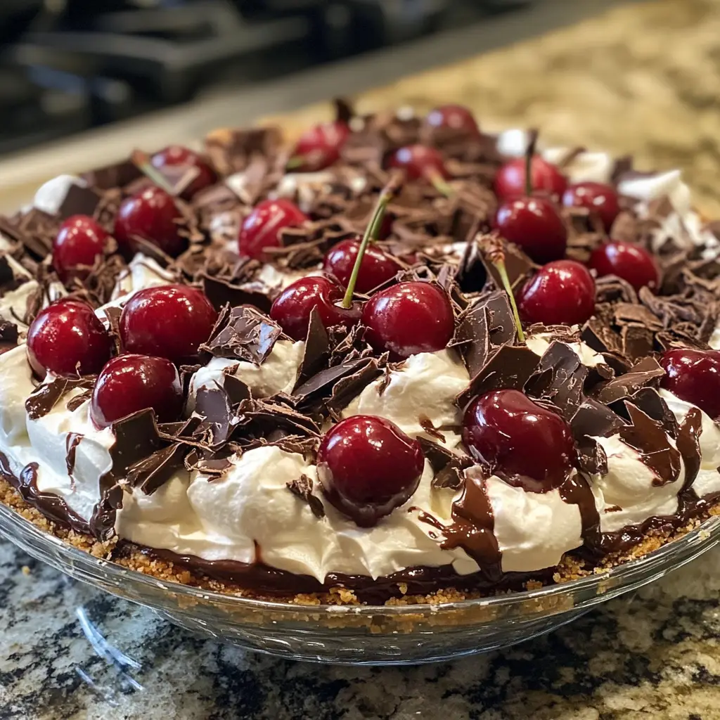 After the pie has set, it’s time for the grand finale! Remove it from the fridge and top it with cherry pie filling. Spread it evenly over the chocolate layer, letting those vibrant cherries shine. Finally, add a generous dollop of whipped cream on top. For a beautiful presentation, you can even sprinkle some chocolate shavings or fresh cherries. Slice, serve, and watch everyone’s eyes light up!