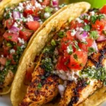 Cilantro and lime work in tandem as nature’s culinary power duo, providing brightness that enhances the tender chicken’s rich flavors. Each taco bursts with freshness, transporting you to a sunny terrace where the only worry is whether to take another bite. Perfect for taco Tuesdays, family gatherings, or a simple dinner, these tacos turn ordinary moments into something spectacular.