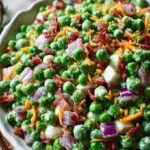 A bright, refreshing dish that combines sweet peas, crispy bacon, creamy dressing, and tangy apple cider vinegar, making it a perfect side for any gathering.