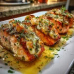 Next, take your salmon fillets and carefully cut a pocket in each one. You want to create enough space to hold that delicious filling without tearing the fish. Gently stuff each pocket with the crab and shrimp mixture. Don’t be shy—pack it in there! The more filling, the better. Place the stuffed salmon fillets in a baking dish, seam side up.