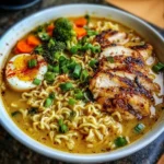This creamy garlic chicken ramen invites you into a world of comfort, warmth, and delight—an escape from the everyday hustle that leaves you satisfied and nourished. As you savor each bite, the tender chicken, creamy broth, and flavorful vegetables envelop you in a cozy embrace. Try this recipe next time you crave something hearty; it promises to be a comforting hug in a bowl that your family will adore. So gather your ingredients, don your apron, and let the aroma of creamy garlic chicken ramen fill your kitchen, creating not only a meal but also cherished memories around the table. Enjoy the culinary journey!