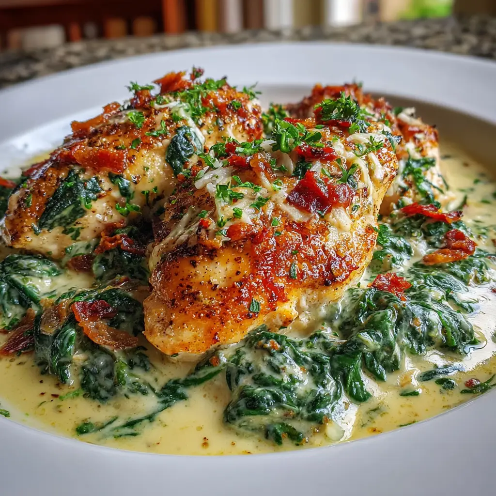 A delicious and creamy chicken skillet dish featuring spinach and Parmesan cheese, perfect for a quick weeknight dinner.