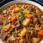 A hearty and nutritious beef barley soup made in a slow cooker, perfect for chilly evenings.