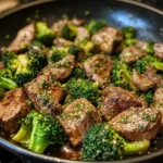 A quick and delicious Garlic Butter Steak & Broccoli Skillet recipe that combines tender steak and vibrant broccoli in a flavorful garlic butter sauce.