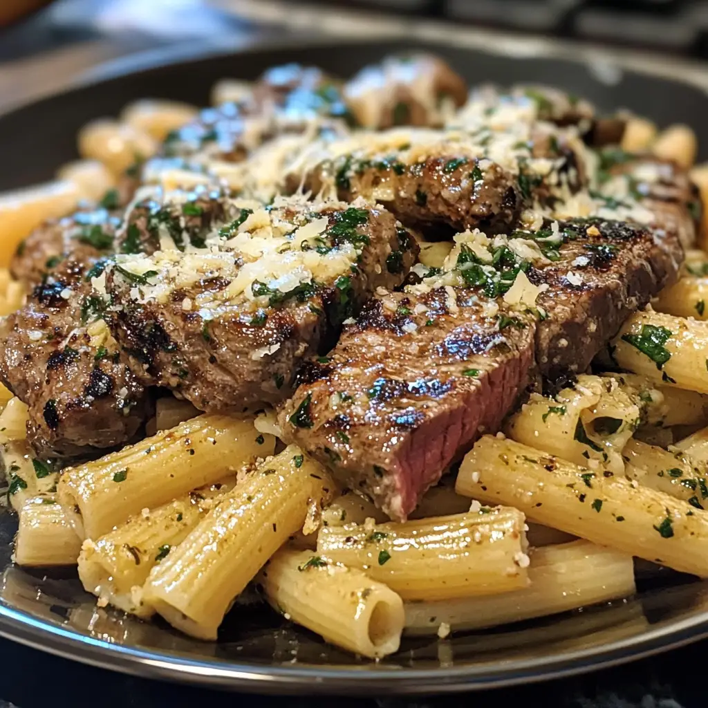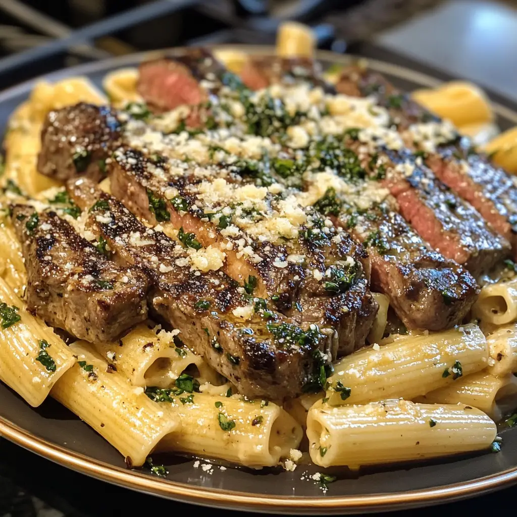 Garlic Butter Steak with Creamy Parmesan Rigatoni Delights!