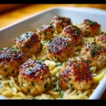 - Serve the golden meatballs on a bed of lemon orzo, garnishing with extra parsley if you desire. Enjoy every bite!
