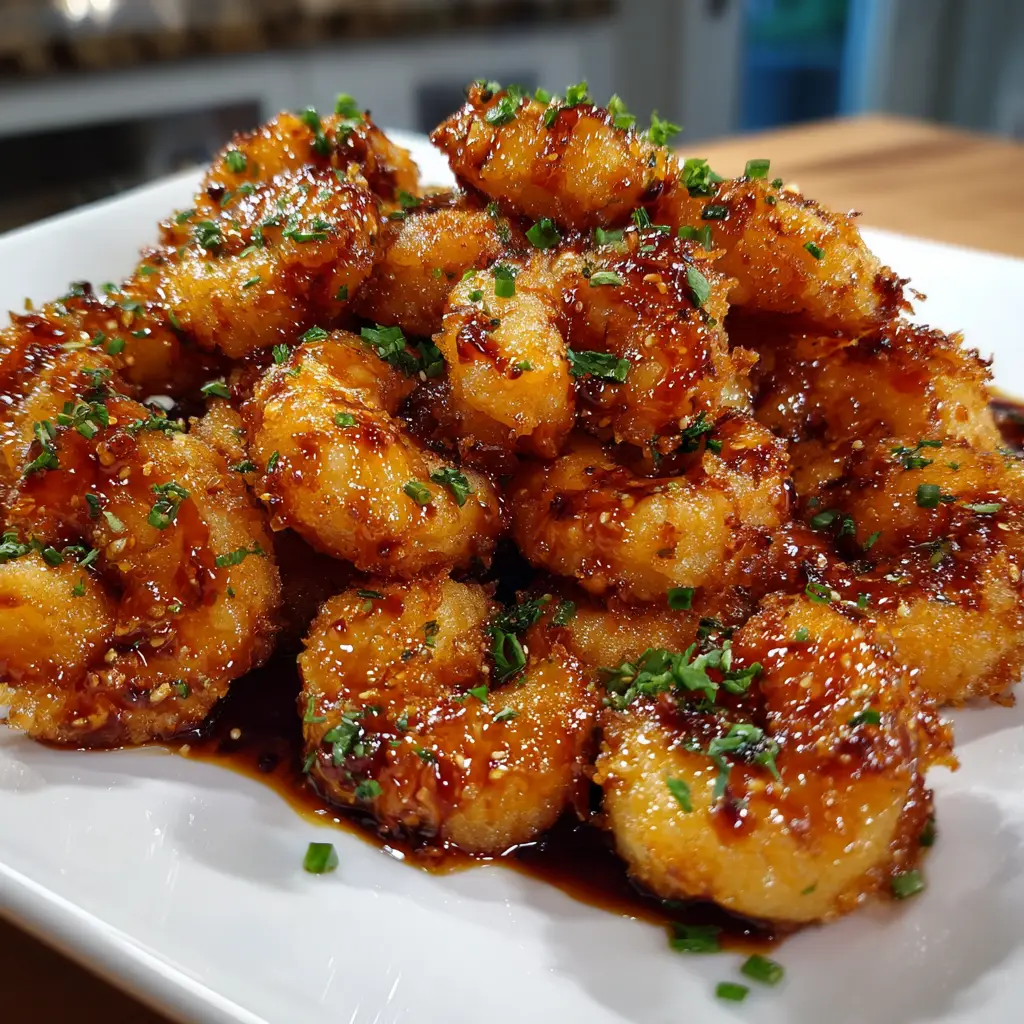 Delicious and crispy shrimp bites coated in a sweet and savory honey garlic sauce.