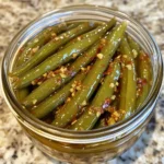 Hot Honey Pickled Green Beans are a deliciously tangy and sweet snack or side dish that combines the crunch of fresh green beans with a spicy honey brine.