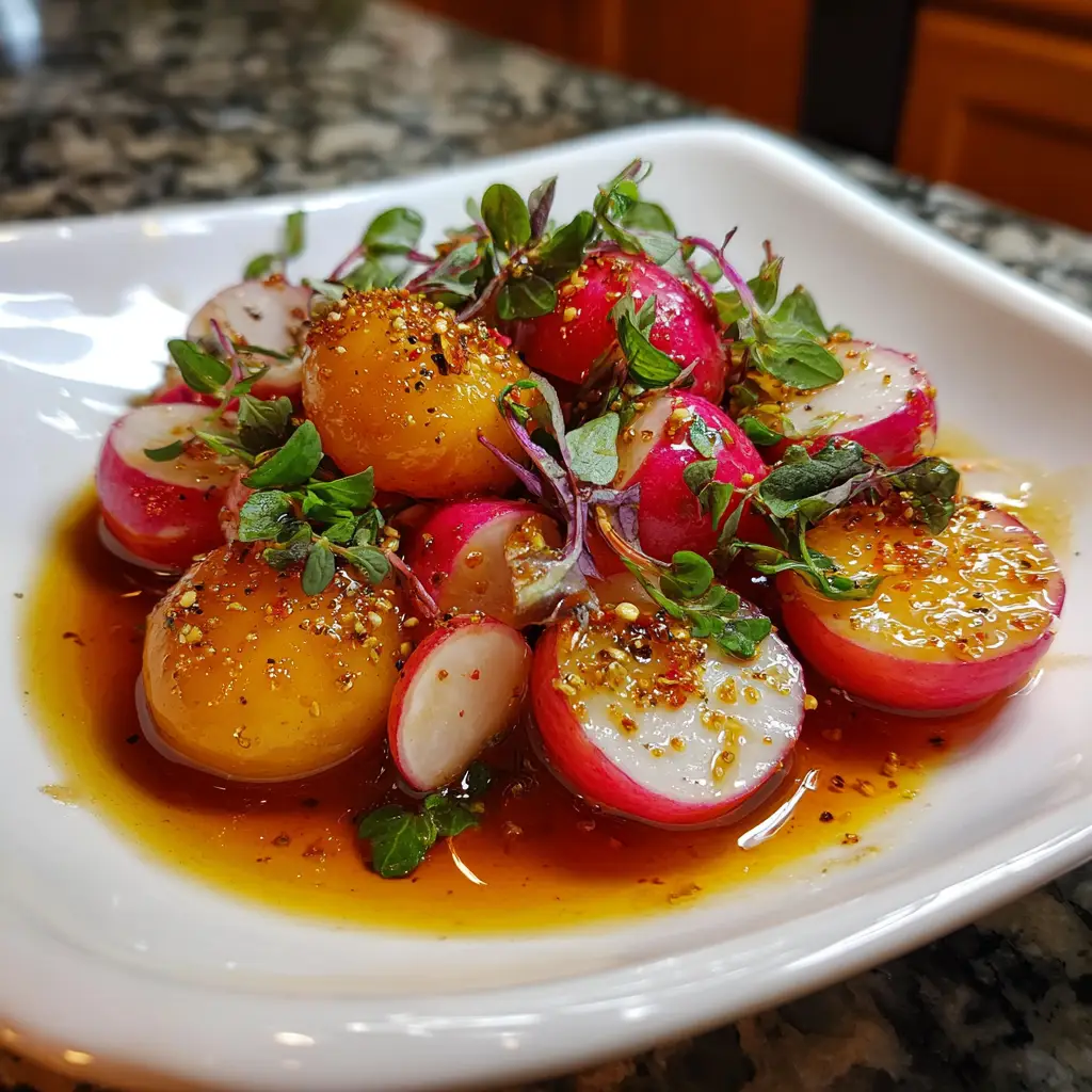 - Pour the honey mixture over the radishes, ensuring they are fully submerged.