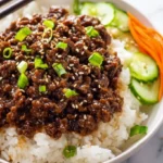 - Serve: Place the beef mixture atop a generous scoop of your cooked rice. Finish with a sprinkle of green onions and sesame seeds.