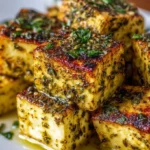 A delightful and savory baked tofu dish infused with zesty lemon and fresh herbs, perfect for any meal.