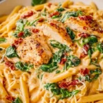As you take your first bite, the explosion of flavors from the creamy sauce envelops your taste buds. The chicken, seasoned to perfection, lends a savory counterpart to the dish’s other elements, while the sun-dried tomatoes burst with a concentrated sweetness unlike anything you’ve tasted before. Each mouthful feels like a warm hug, a sumptuous experience that makes you feel right at home. It’s a recipe that invites laughter around the dinner table, sparkling conversations, and perhaps even a declaration of love. Who could resist the allure of this beautiful plate of pasta that whispers promises of cherished moments?