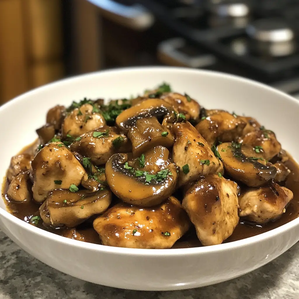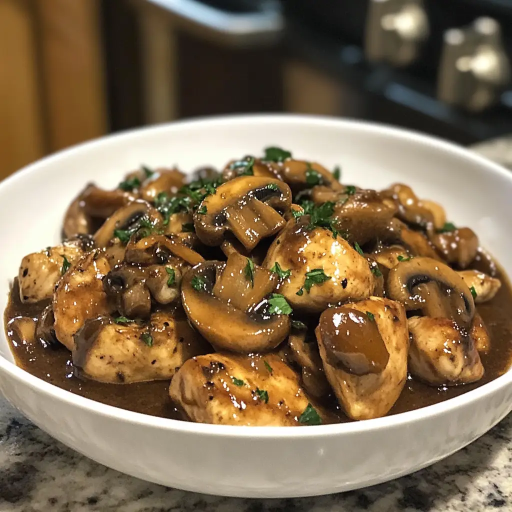 Mushroom Chicken is a savory dish featuring tender chicken pieces cooked with mushrooms in a rich sauce, perfect for a comforting dinner.