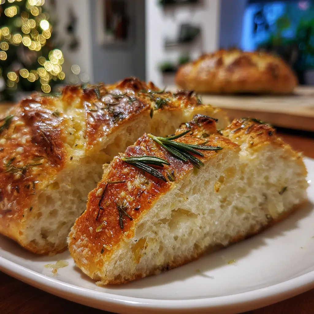 A simple and delicious no-knead bread infused with rosemary and topped with sea salt, perfect for any meal.