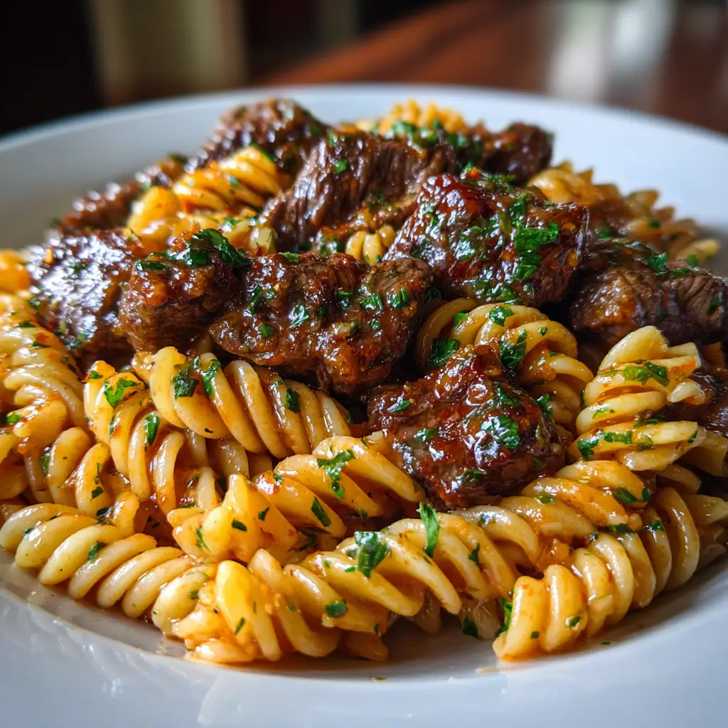 A delicious and easy one-pot meal featuring tender steak and zesty pasta, perfect for a quick dinner.
