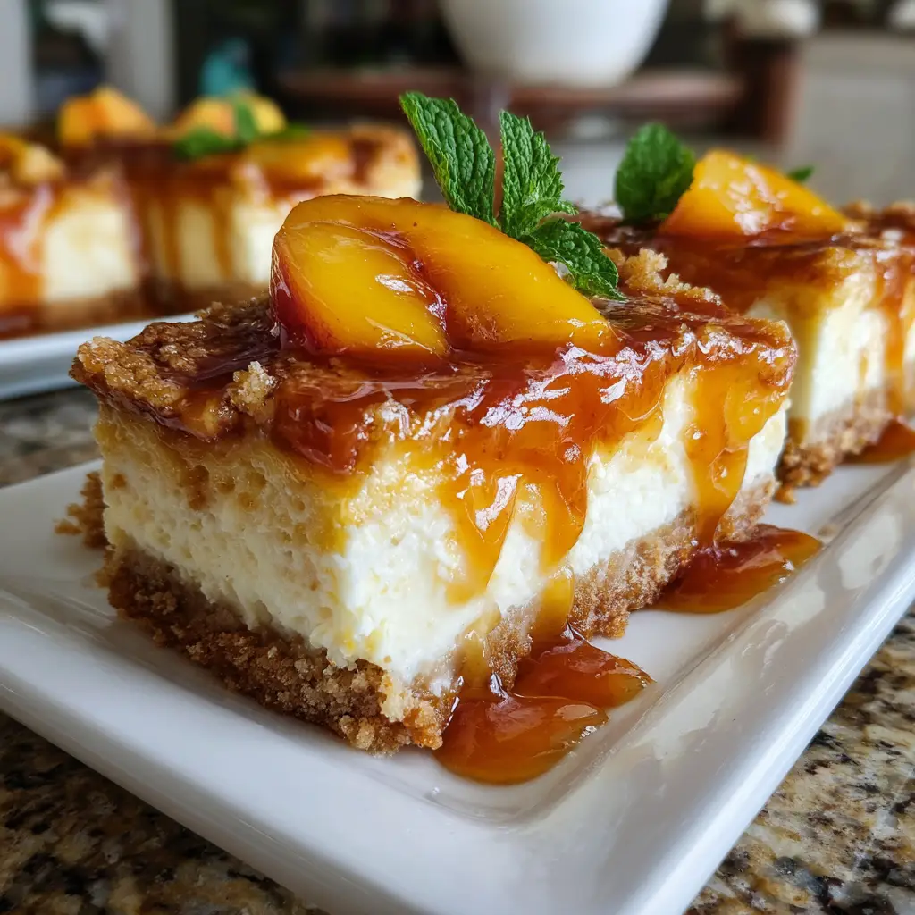 Peach Cobbler Stuffed Cheesecake Bars: A Dessert Delight!
