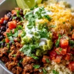 Sinking your fork into a hearty bowl brimming with vibrant colors, tempting textures, and mouthwatering flavors feels like a celebration of good health. Imagine tender ground chicken expertly seasoned with bold taco spices, nestled atop a bed of fluffy cauliflower rice that lends a creamy, satisfying foundation. Each bite bursts with the freshness of juicy tomatoes, creamy avocado slices, and crisp black beans that provide a delightful contrast in both texture and taste.