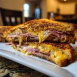 Finally, remove the sandwich from the skillet, slice it in half, and serve hot. This is the moment you’ve been waiting for! Enjoy every gooey, cheesy bite of your Roast Beef & Cheddar Melt Sandwich.
