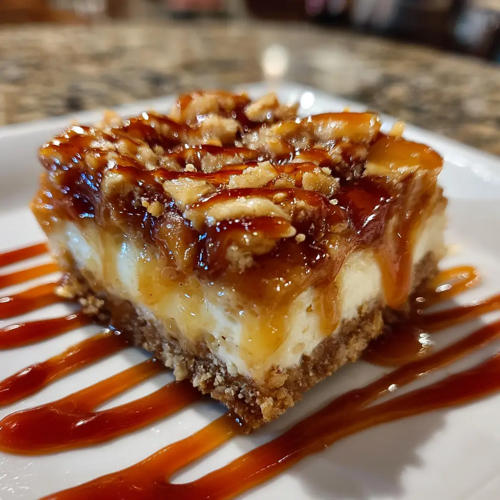 Delicious salted caramel apple cheesecake crunch bars that combine the flavors of caramel, apple, and cheesecake in a crunchy dessert.