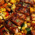 Imagine a bustling kitchen filled with the aromatic symphony of sweet and tangy barbecue sauce mingling with the earthy scent of roasted vegetables. Picture it: a sheet pan filled to the brim with plump, juicy pork chops nestled among vibrant bursts of color from fresh zucchini, bell peppers, and golden potatoes. Each bite reveals a tender, succulent texture, enhanced by the rich flavors of the sauce that caramelizes and glazes the meat to perfection. This is not just a meal; it’s an experience that awakens your senses and invites your entire family to gather around the table.