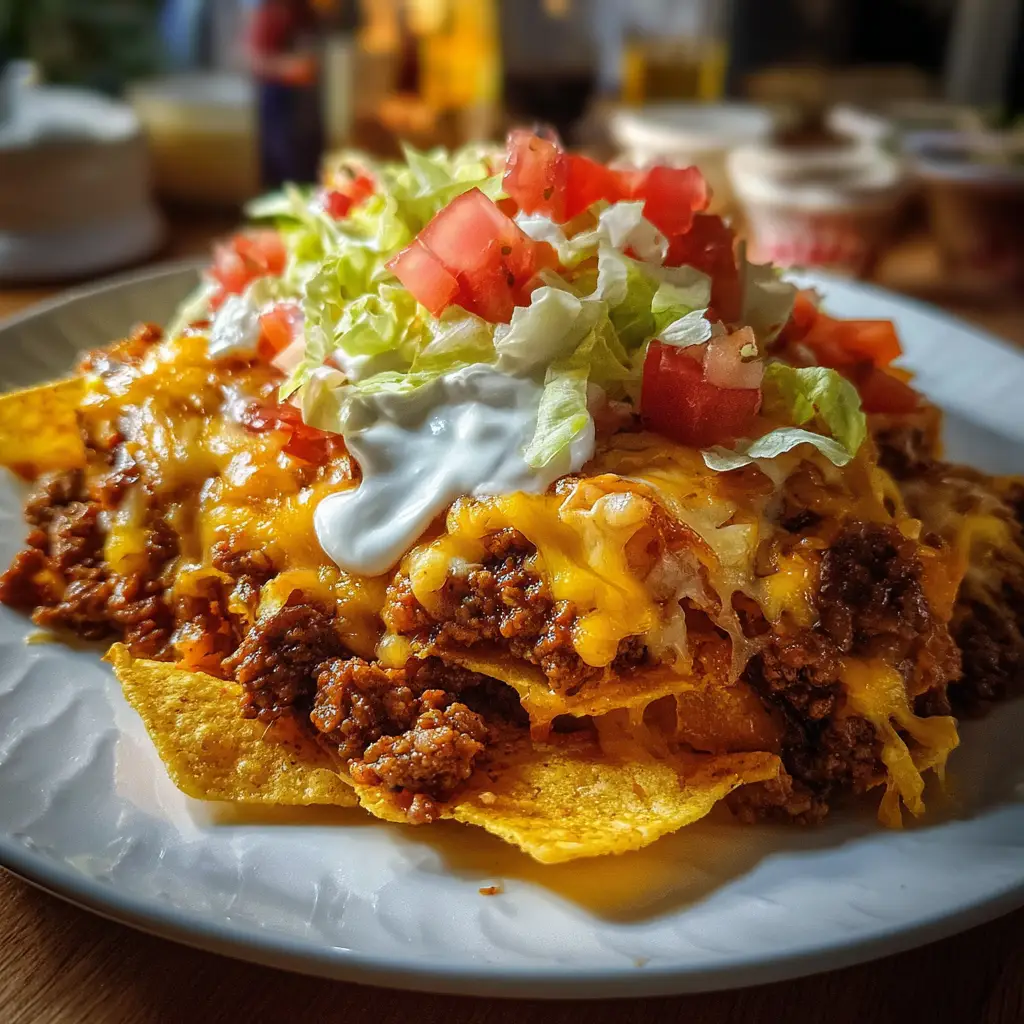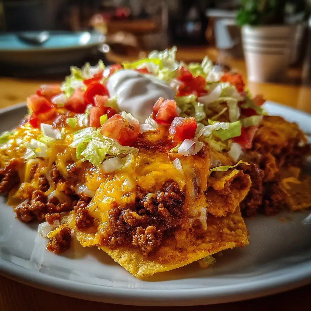 - Repeat the layers with the remaining tortilla chips, beef mixture, and cheese.