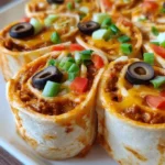 Each pinwheel offers a delightful crunch from the tortillas, perfectly balanced by the freshness of diced bell peppers and green onions, while the sliced black olives add an earthy richness to every morsel. This dish captures the essence of a taco but nestled within an easy, hand-held creation. It’s a celebration on a plate, beckoning you to share memories filled with laughter, warmth, and good company.