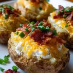 These Twice Baked Loaded Breakfast Potatoes, filled with a creamy blend of cheddar cheese, crispy bacon, and fresh green onions, transform simple potatoes into a delightful breakfast treat.